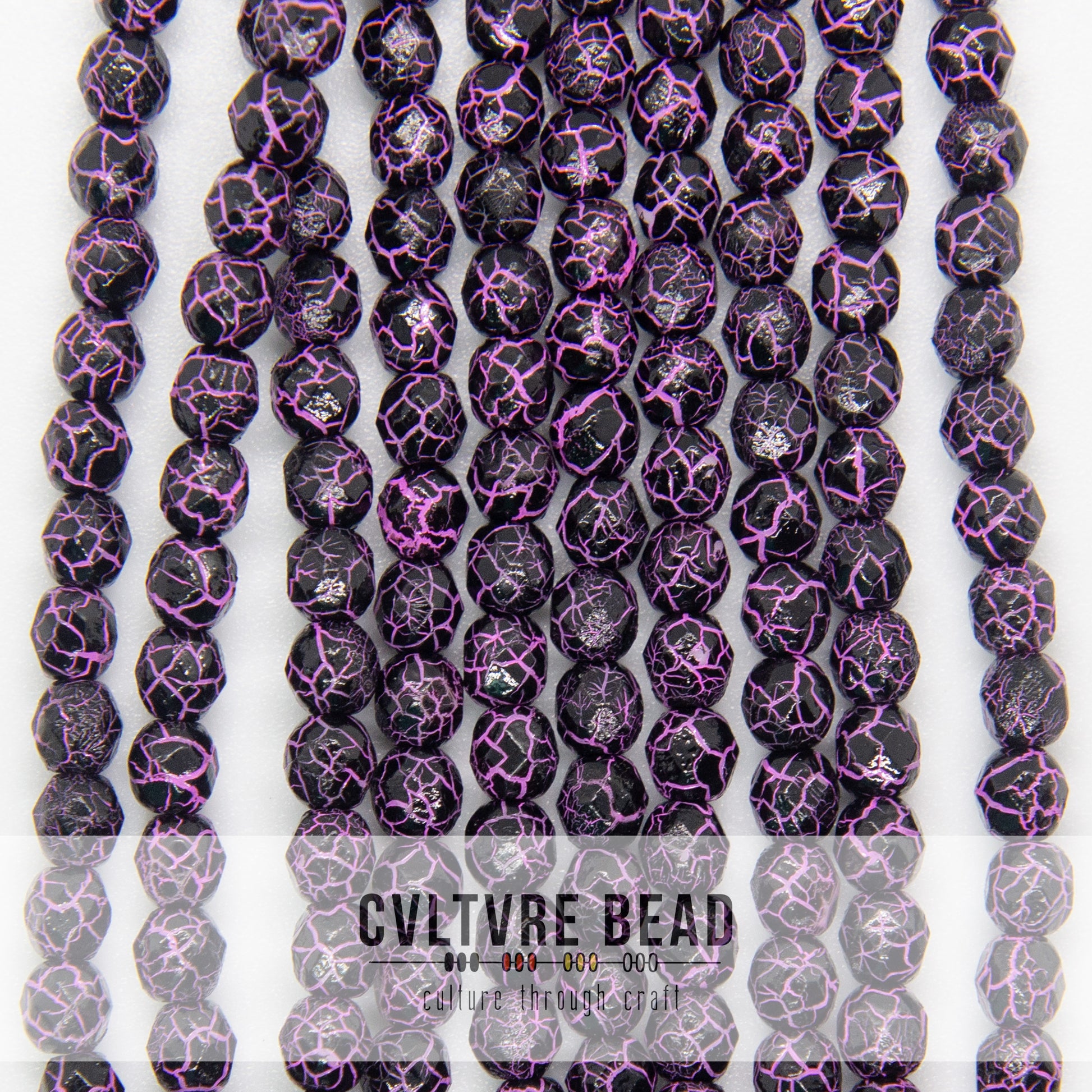 Ionic Jet/Pink - Czech Fire polished Beads - 4mm